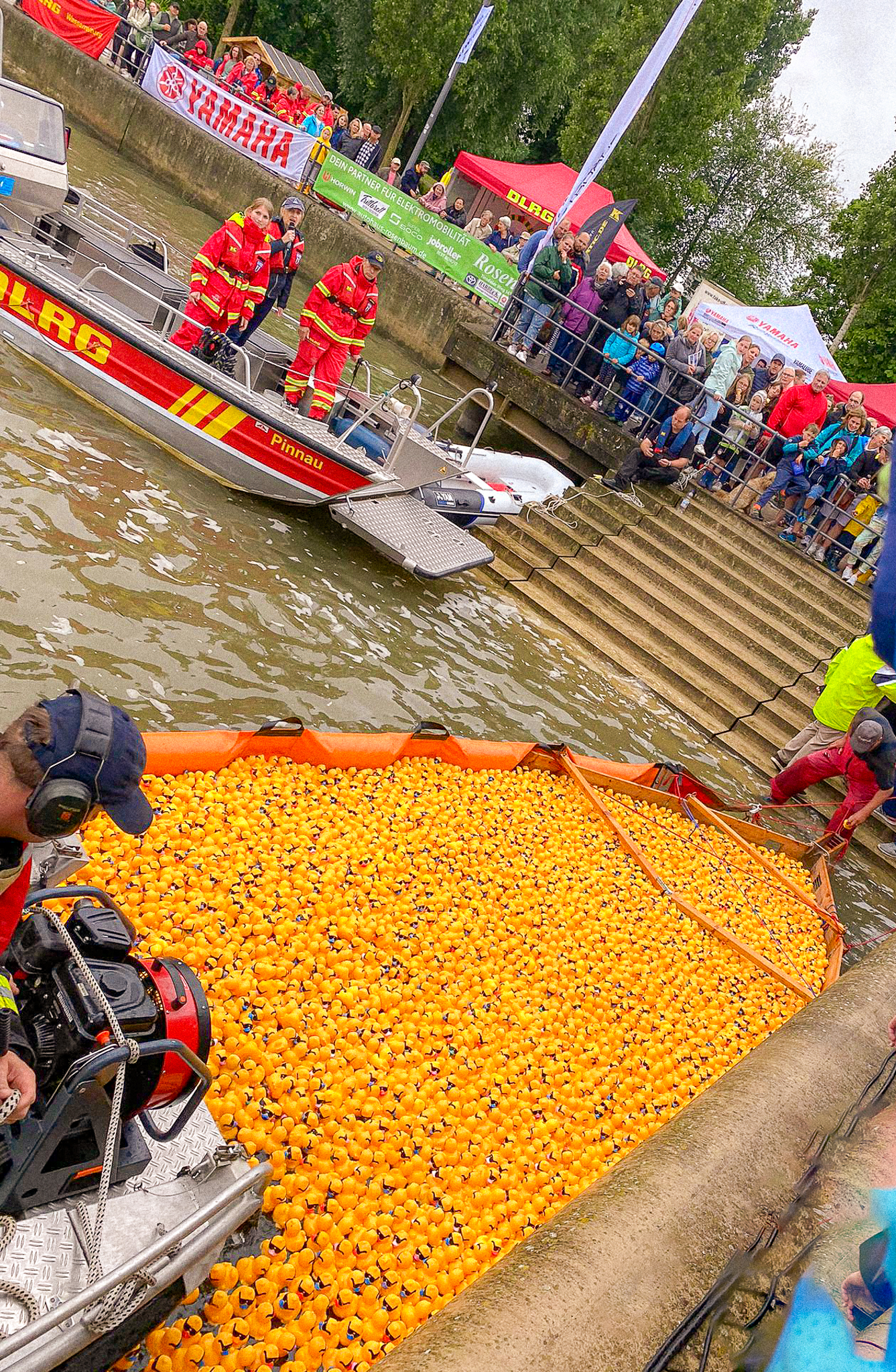 Am 1. Juli schwammen 3000 gelbe Enten im Hafenbecken Wedel für den guten Zweck um die Wette!
